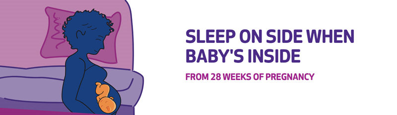 The important message to remember is to start every sleep on the side from the twenty-eighth week of pregnancy – “sleep on side when baby’s inside.”